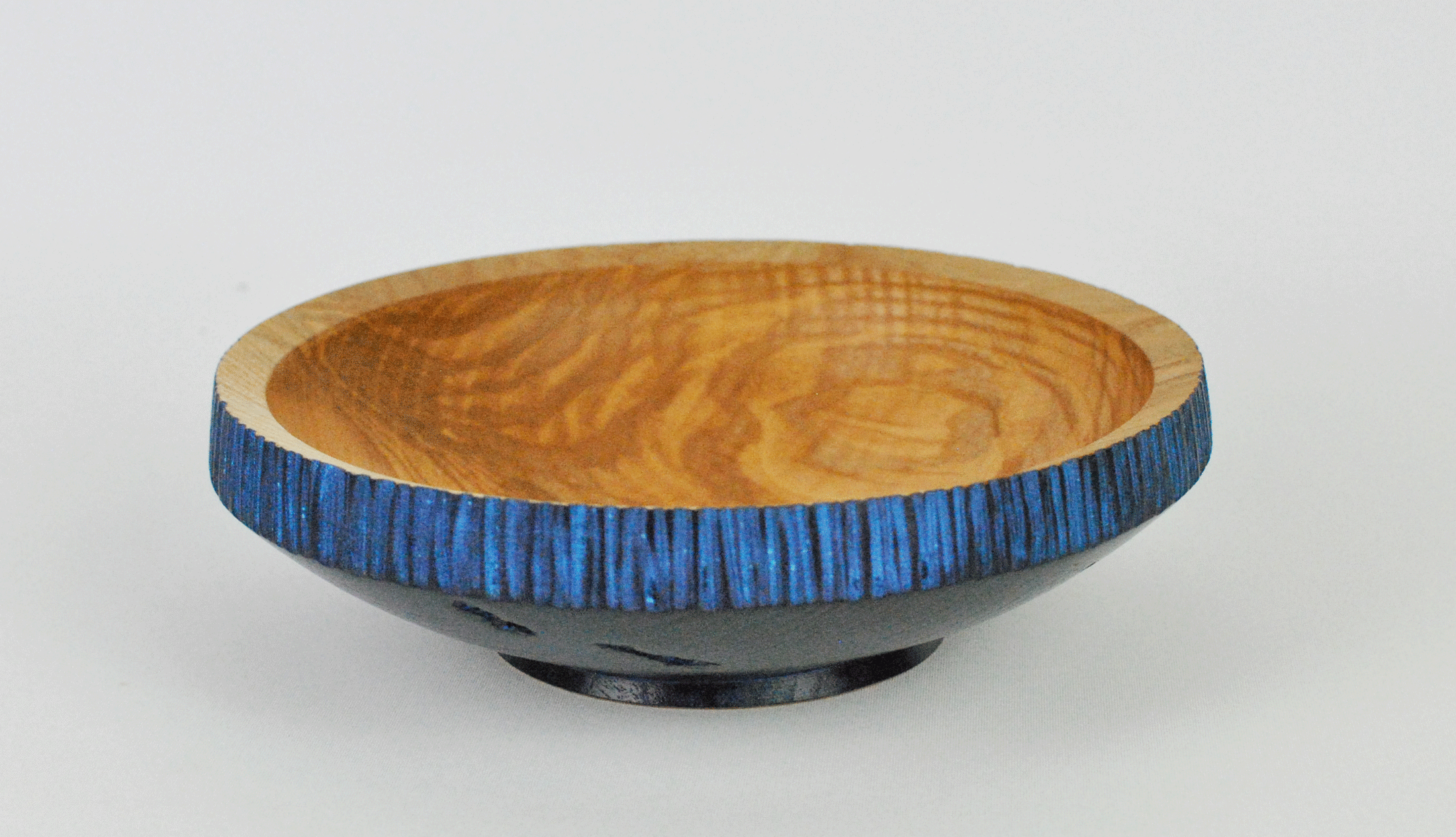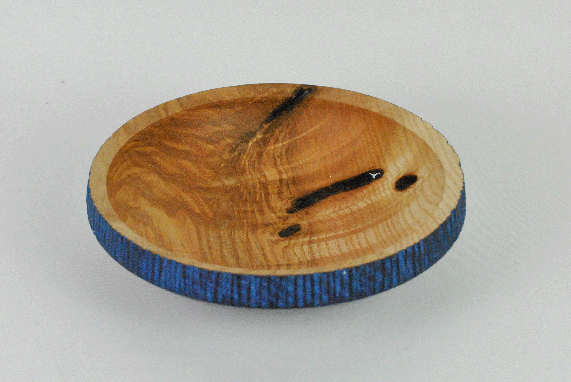 Irish Ash vessel featuring a textured coloured edge . Featuring natural intrusion on the interior.