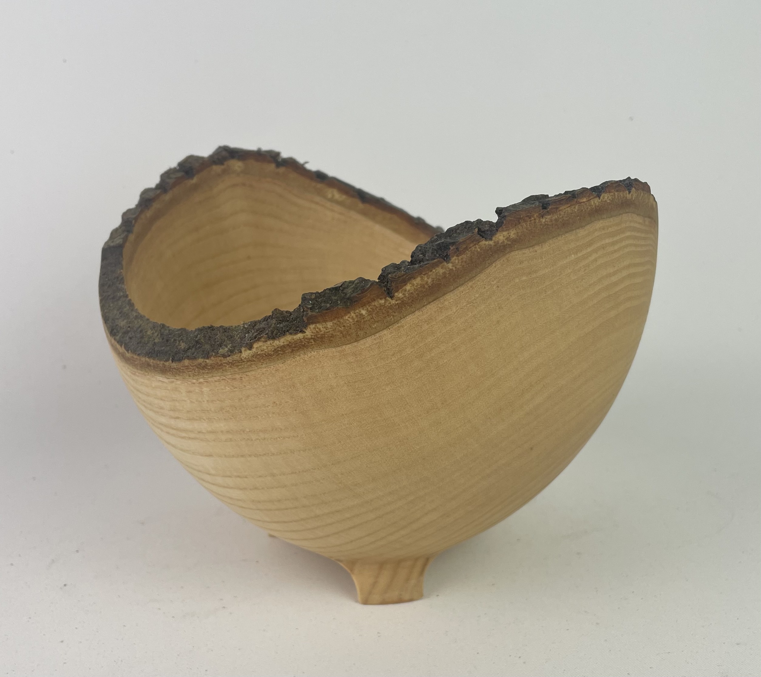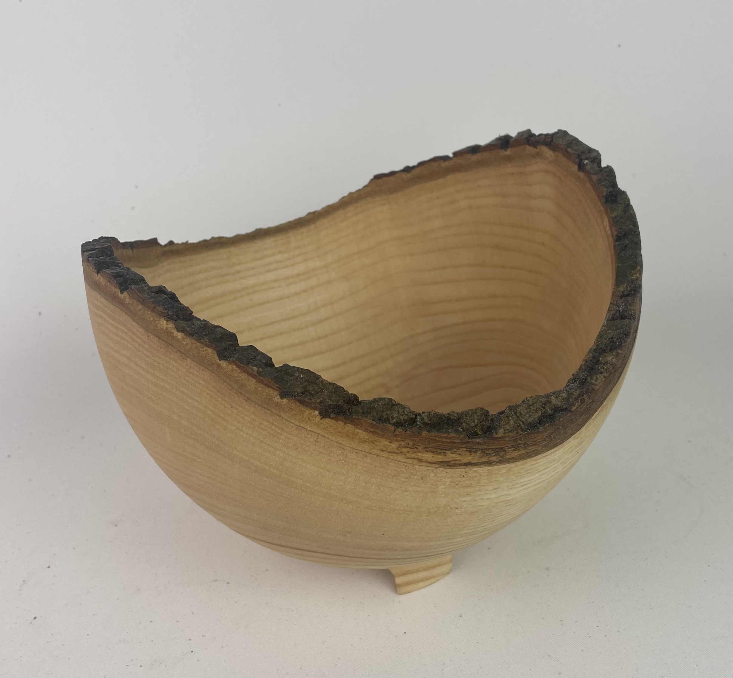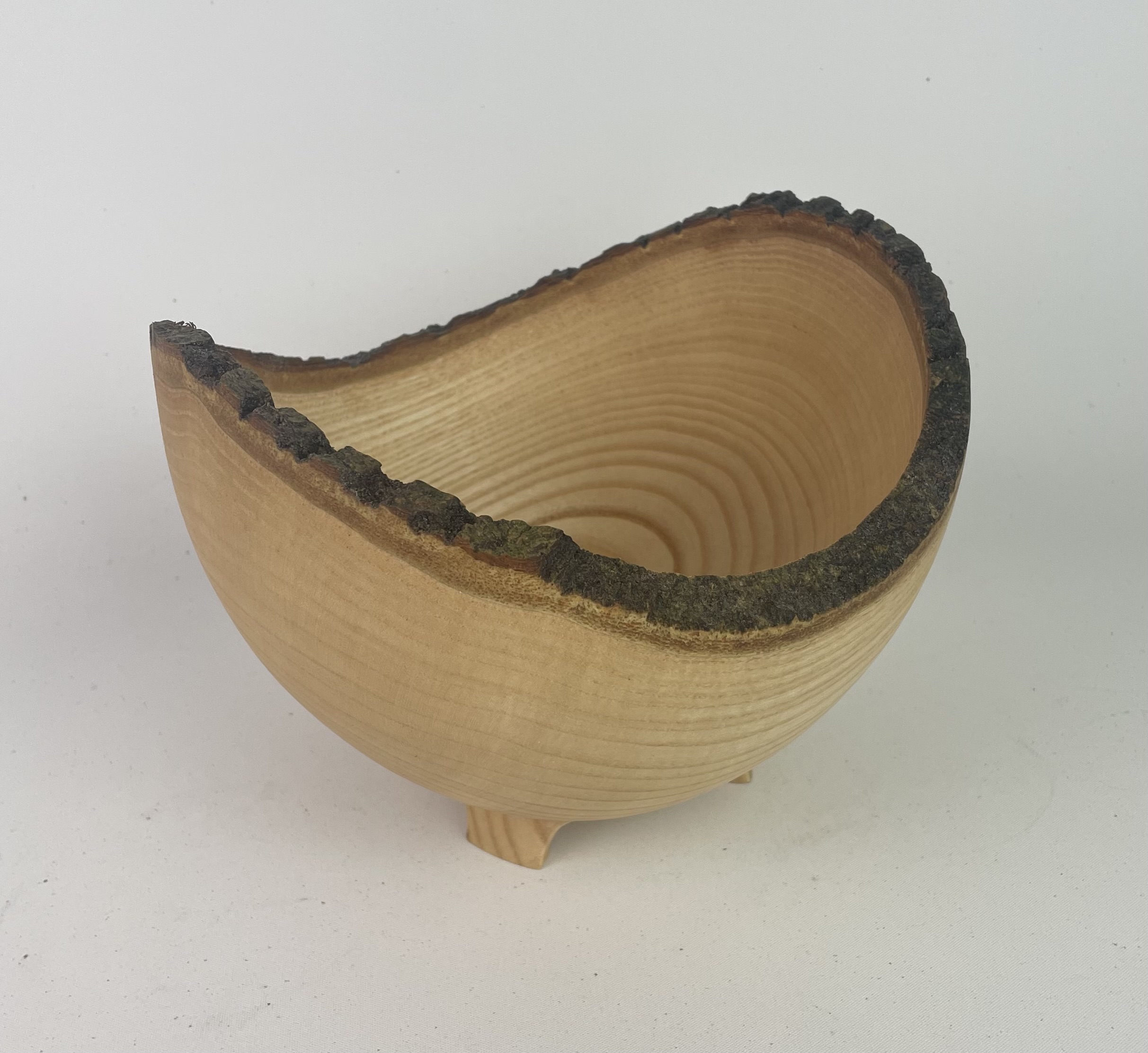 Wonderful Irish Ash live edge vessel standing on three carved feet.