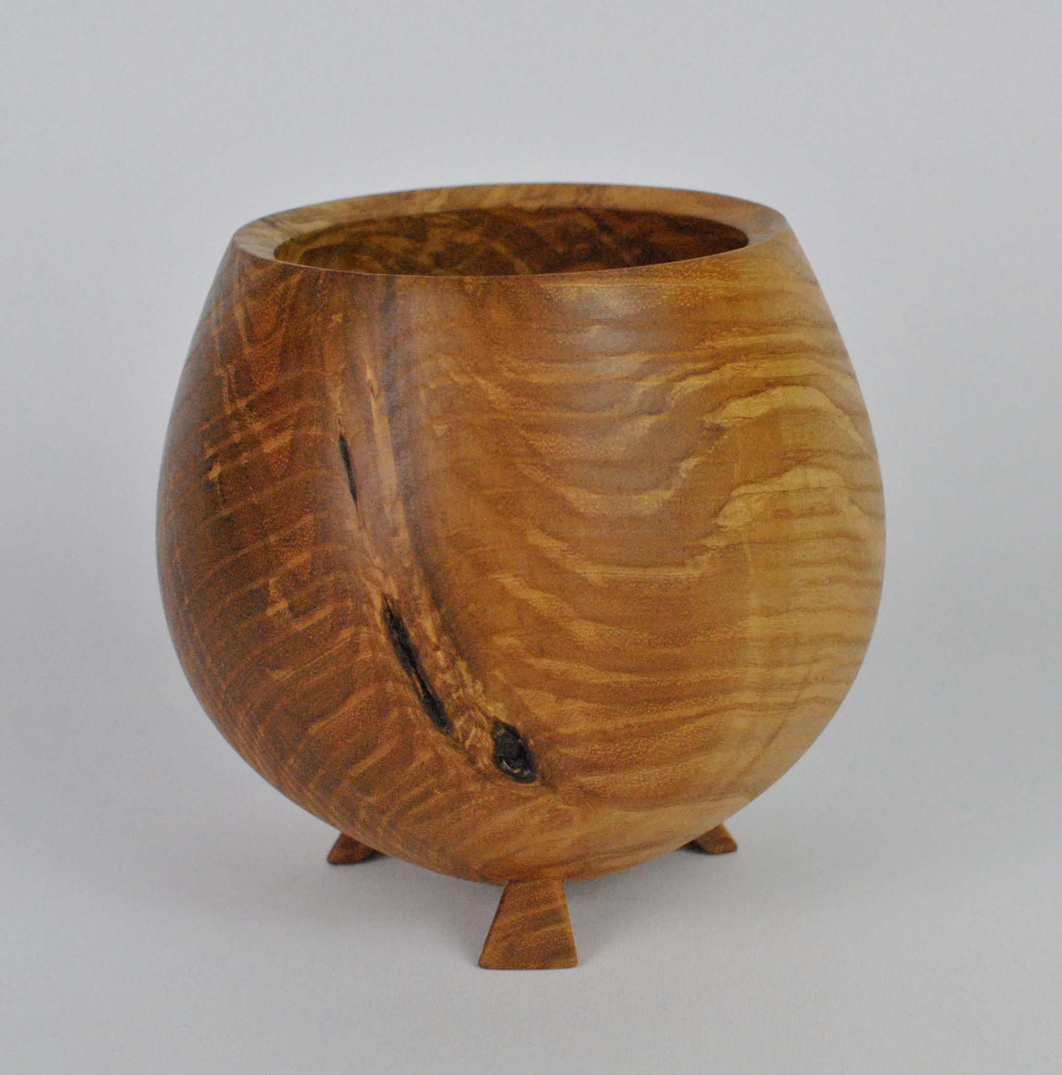 Native Irish Ash vessel sitting on 3 feet – featuring markings associated with our beautiful native ‘ Olive Ash ‘